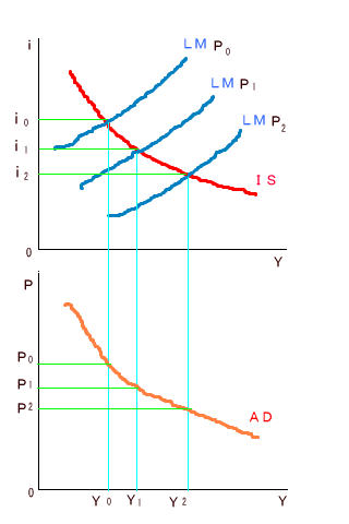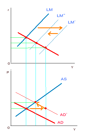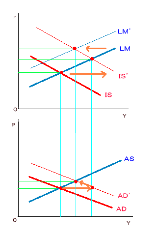 | 物価の下落 | → | 実質貨幣供給量の増加 | → | LMの右シフト | → | 国民所得の増加 |