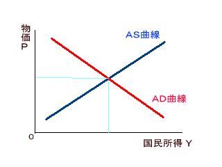 | 総需要曲線 Aggregate Demand | 財市場と貨幣市場 | を均衡させる実質国民所得と物価 |