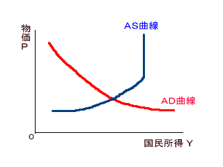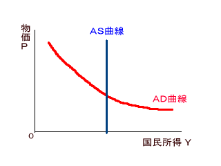 | 垂直なAS曲線 | 古典派は、常に完全雇用が達成 → (長期)完全雇用国民所得の水準で垂直 |
