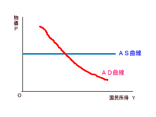 | 水平なAS曲線 | 短期には、価格が硬直な世界 |