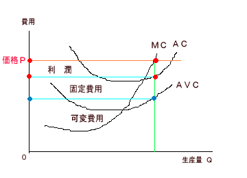 | 利潤最大の生産量の決定 | 限界費用=限界収入 |