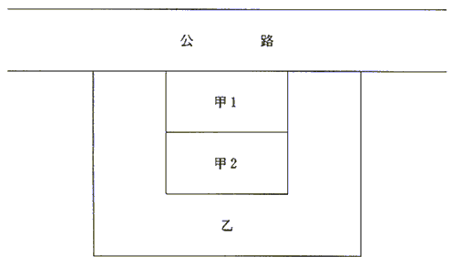 Aは,自己所有の甲土地を,次の図で示す甲1及び甲2の各土地に分割した。この場合において,甲2の所有者が公路に出るための通行権に関する次のアからオまでの記述のうち,正しいものの組合せは,後記1から5までのうちどれか。